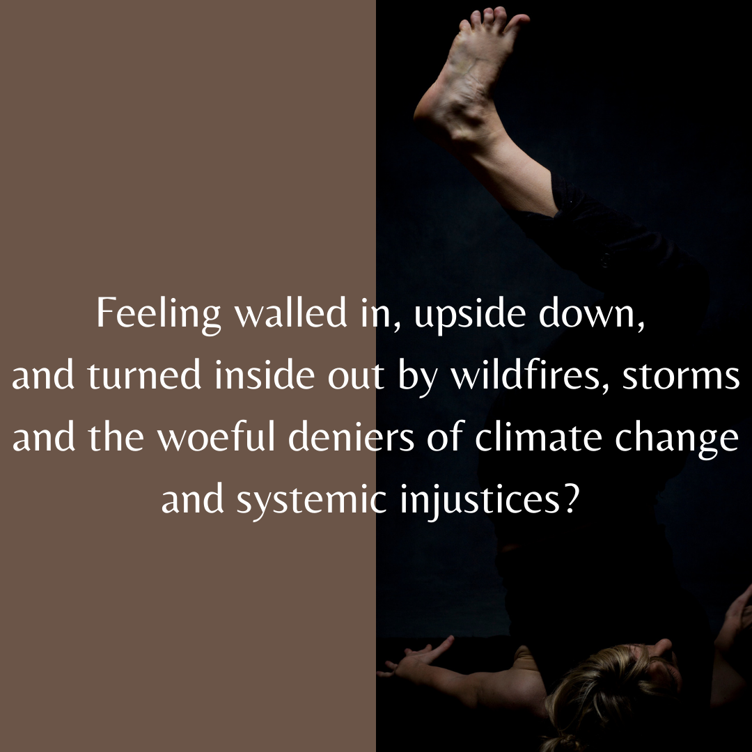 I MOVE as ART & PRACTICE for overcoming the conflagrations of our lives in pandemics, in societal structural injustices, in racial trauma, and in EARTH-RAGE storms, heat, drought, and wildfires! I move with earth to become an ancient-future-now, fully human-being; choosing daily to participate in the evolutionary rhythms of earth-becoming-to-overcome the mistakes of our species.